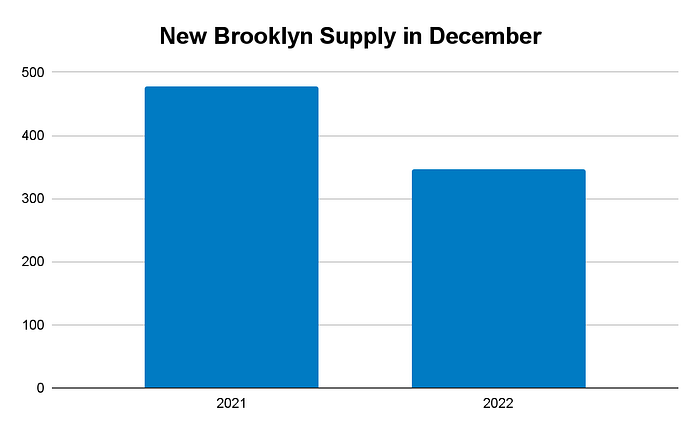 We glean from the chart directly below that, like the previous month, December’s total supply is low compared to the two previous years. However, those years are atypical and total supply has actually been quite steady throughout 2022. New supply, too, is lower than this time last year, yet the seasonal decrease is normal. Note: “Total Supply” refers to inventory on the market at a given time. “New Supply” refers to new inventory listed during a specific time period.