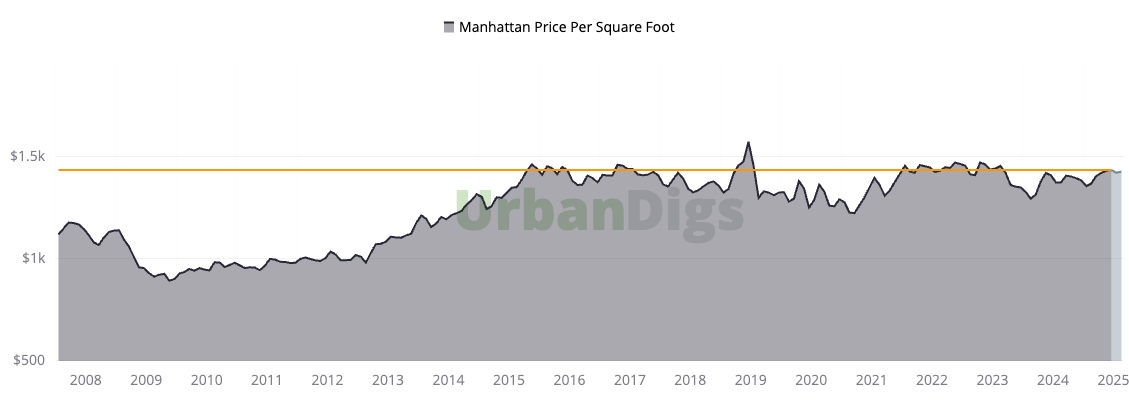 Manhattan Median PPSF: Prices Edge Down from June, but Stay Above 2024 Levels