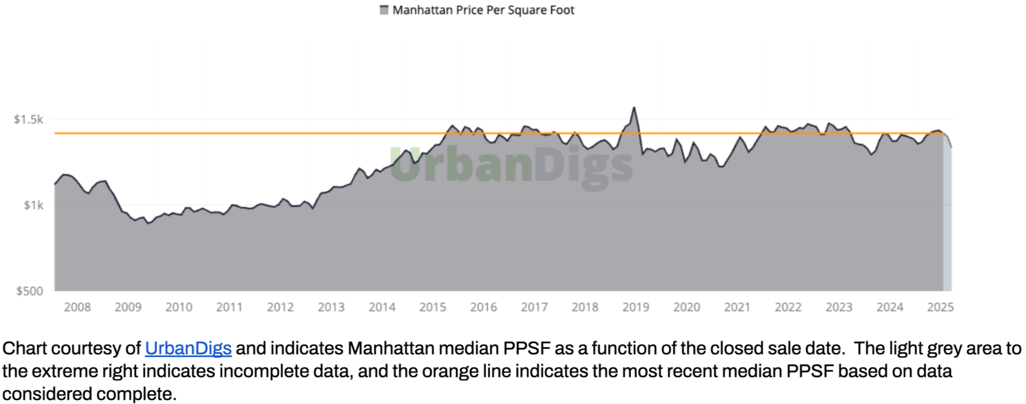 Manhattan Median PPSF: Prices Slip – Median PPSF Down ~5% Year-Over-Year