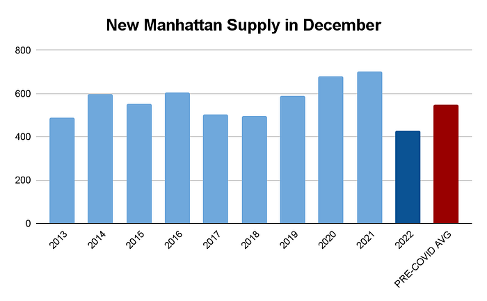 As we start 2023, our principal focus is, yet again, demand. Why the constant focus on demand? Because it is the fuel that powers the engine. If demand is strong then things are in motion. Compared to the pre-pandemic average (defined as Jan 5, 2015 to Mar 1, 2020), Manhattan demand spent the last half of 2022 hovering at -20%. Frightening, right? Well, no, not really. Not in the context of the 30 other worldly months that preceded it.