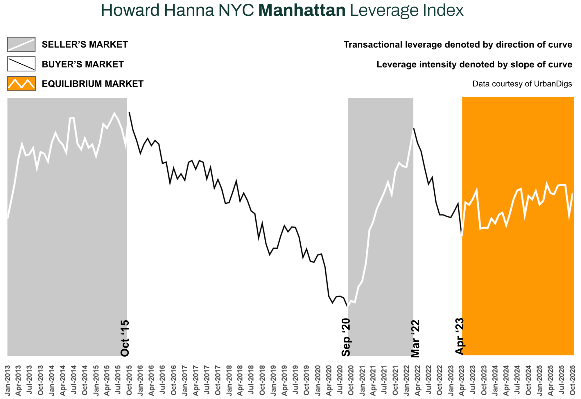 - The Howard Hanna NYC Manhattan Leverage Index signals a clear tilt toward sellers in current conditions.