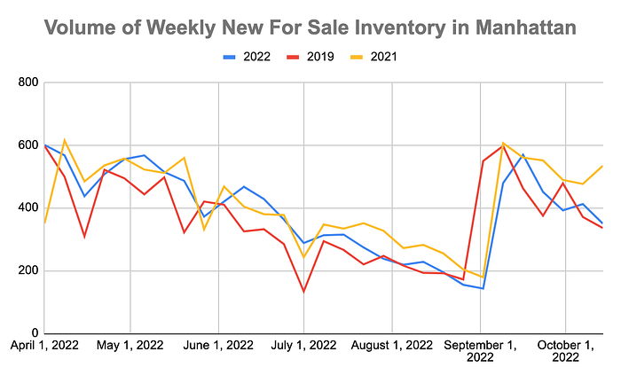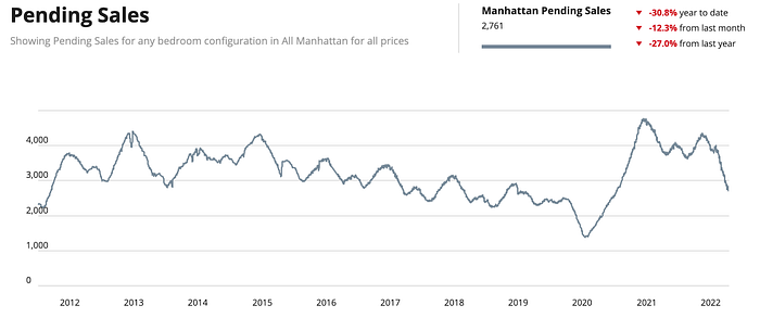 Manhattan Pending Sales decreased only 2% this week to 2,761, but remained below the 3k level for the third week in a row, and only the third time since February 2021.