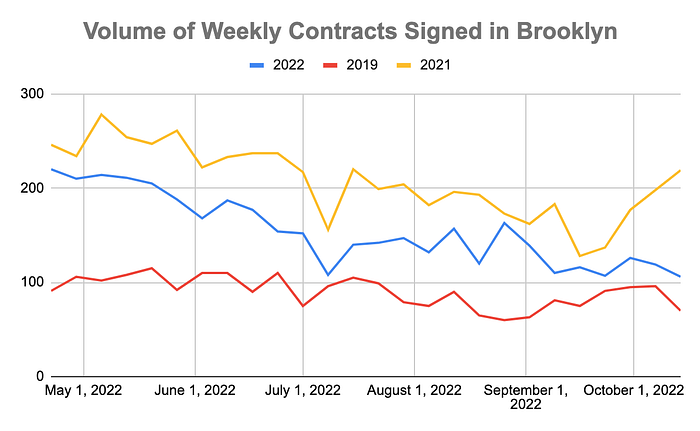 Brooklyn Contracts Signed — 106 contracts were signed this week, an 11% pullback from last week but a 51% increase from the same week in 2019.