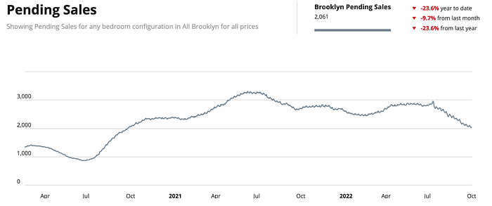 As the Manhattan and Brooklyn markets normalize coming out of the pandemic, it’s important to utilize a fair benchmark for the basis of comparison. Just as a fair benchmark would not be the first months of COVID where contracts plummeted, neither would be the atypical 2021 and H1–2022 where we witnessed record buying activity from the one-two punch of pent up demand followed by the pulled forward future demand as mortgage rates climbed. The COVID pandemic was (hopefully) a once in a generation event, as was the confident demand that ensued. So, we need to extend the look back period for our comparison in search of a more “normal’’ time frame.