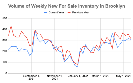 Brooklyn Supply increased by a whopping 7% this week to 2,871 units, as 308 new listings came to market, 2% less than last week and 2% less than the same week last year.