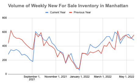 Manhattan Supply increased by 2% this week to 6,426 units, bringing supply to a level not seen since early November 2021. This week 486 new listings came to market, 5% less than last week and 13% less compared to the same week last year.