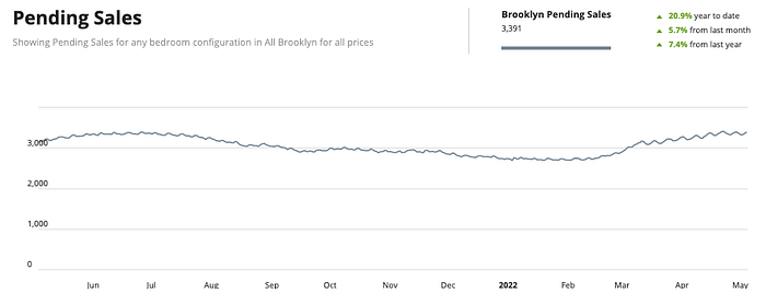 Brooklyn Pending Sales remained flat this week at 3,391.