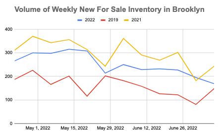 Brooklyn Supply also decreased nearly 6% to 2,534 units as 169 new listings came to market, 13% less than last week and 14% more than the same week in 2019. Supply is also expected to continue trending lower through the summer.