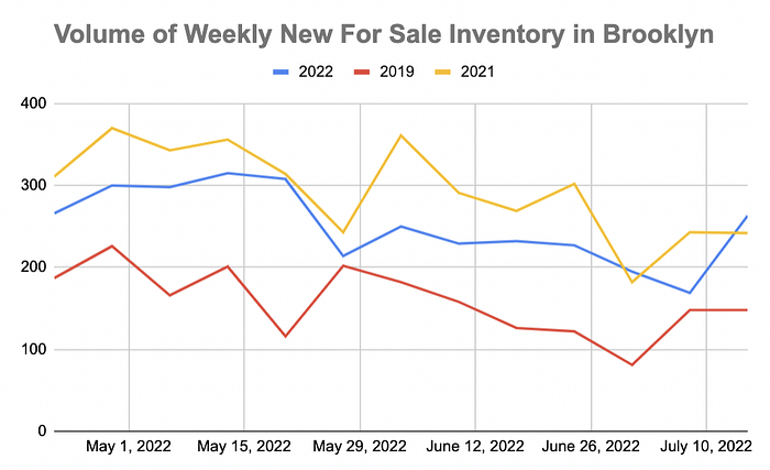 Brooklyn Supply also increased 4% to 2,638 units as 263 new listings came to market, 55% more than last week and 78% more than the same week in 2019.