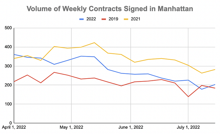 Manhattan Contracts Signed — 203 contracts were signed this week. This represents a 14% increase from last week and a 10% increase from the same week in 2019.