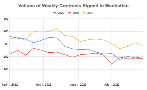 Manhattan Contracts Signed — 200 contracts were signed this week. This represents a 5% increase from last week and an 8% increase from the same week in 2019.