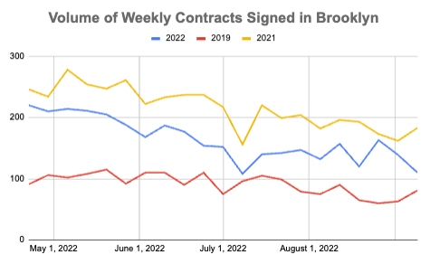 Brooklyn Contracts Signed — 110 contracts were signed this week. This represents a 20% decrease from last week and a 9% decrease from the same week in 2019.