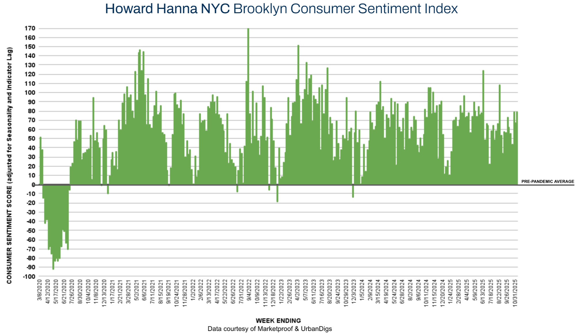 The New York City market is easing into its late-fall phase. Manhattan’s inventory is trending down after a strong October, while Brooklyn’s supply begins to stabilize. The Howard Hanna NYC Consumer Sentiment Index slipped from 40% to 24%, underscoring both seasonal caution and political recalibration following Mayor-elect Zohran Mamdani’s unexpected victory.